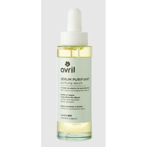Véritable élixir d’huiles végétales et essentielles bio, le sérum purifiant certifié bio Avril purifie, régule la sécrétion de sébum et resserre les pores tout en laissant la peau nourrie et régénérée.