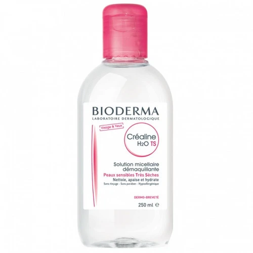 Spécialement formulée pour les peaux sensibles très sèches, la solution micellaire Bioderma Créaline TS H2O Solution Micellaire 250 ml garantit un nettoyage en douceur du visage et des yeux (élimine le maquillage résistant à l’eau). Les micelles permettent une parfaite micro-émulsion des salissures tout en respectant l’équilibre cutané (sans savon, pH physiologique). Enrichi en actifs hydratants* et filmogènes, Créaline TS H2O lutte contre la déshydratation cutanée. Les actifs apaisants et décongestionnants préviennent les sensations d’irritation souvent liées au nettoyage.