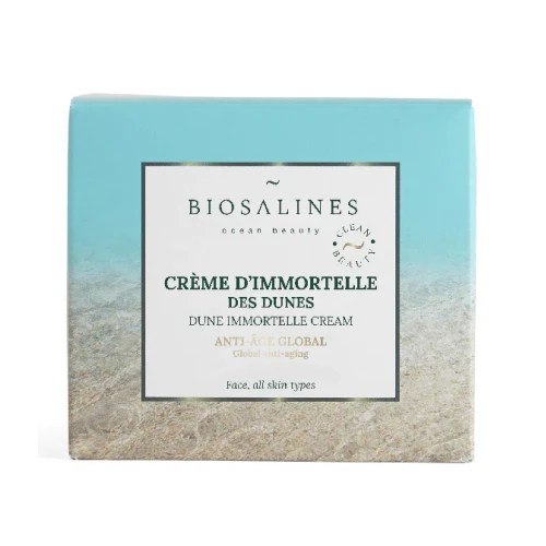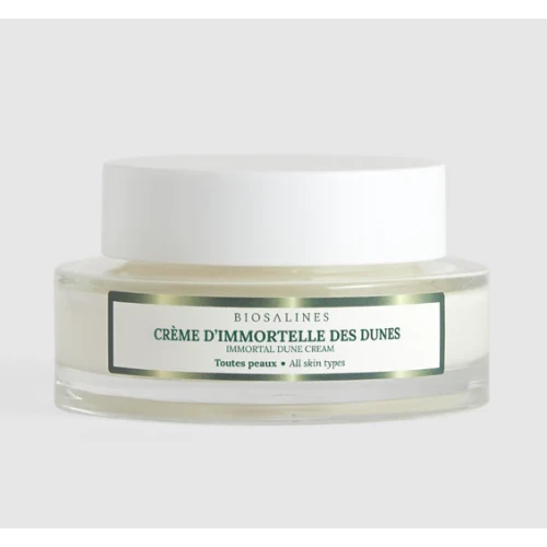 Formulée à base d’immortelle des dunes, petite plante aux fleurs dorées à la jeunesse éternelle, cette crème anti-âge renferme également de l’algue Wakamé aux propriétés anti-âge précieuses par stimulation de la synthèse de collagène et d’élastine. La crème d’immortelle des dunes offre ainsi à la peau une action anti-âge globale. Elle agit à la fois sur les rides et ridules, la fermeté, l’élasticité et sur l’éclat du teint.