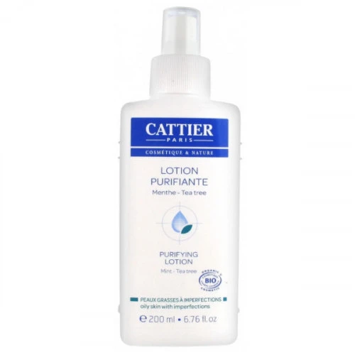 Cattier Lotion Purifiante 200 ml s’utilise matin et soir après le gel nettoyant pour parfaire le démaquillage des peaux grasses à imperfections.