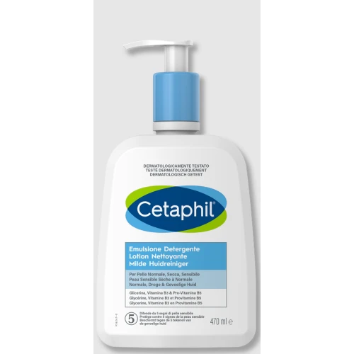 Lotion nettoyante douce et non-irritante recommandée pour les soins quotidiens des peaux sensibles et sèches.