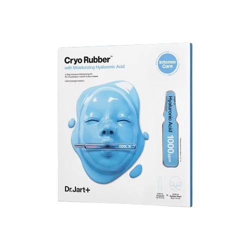 Dr.Jart+ combine une ampoule d’acide hyaluronique hautement concentrée avec un masque Cryo Rubber™ rafraîchissant et bloquant l’humidité pour aider à stimuler l’absorption du puissant sérum semblable à un gel.