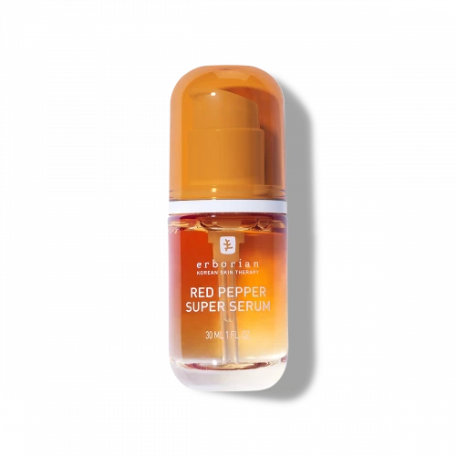 Chez Erborian, nous avons tellement confiance en nos super ingrédients coréens que nous leur avons laissé une place de choix dans notre flacon : leurs extraits sont incorporés à 80%. Notre sérum éclat visage RED PEPPER SUPER SERUM agit comme une dose énergisante qui réveille la peau pour booster instantanément son éclat naturel. En surface, ses agents exfoliants d’origine naturelle dévoilent un teint plus unifié et lumineux. La promesse d’une peau ré-énergisée : comme tonifiée et éclatante de santé ; dans une texture fluide et légère ! En bonus ? Un prébiotique, pour contribuer à maintenir l’équilibre cutané et ainsi préserver l’hydratation de la peau.