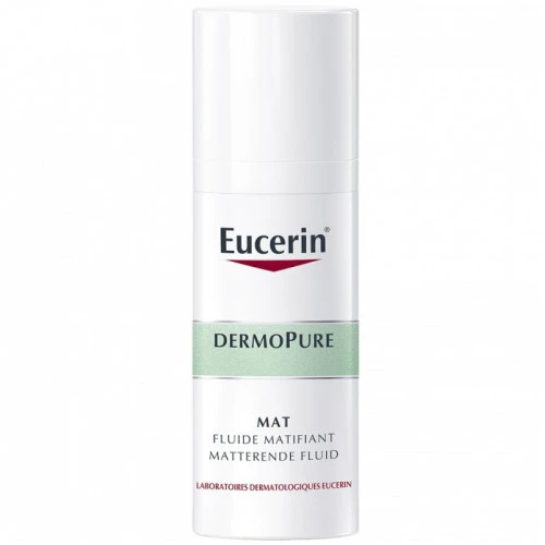 Eucerin DermoPure Mat Fluide Matifiant 50 ml parfaitement recommandé pour les peaux à imperfections, va réduire la brillance, les imperfections et apaiser les irritations.