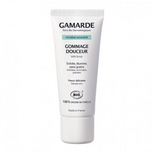 Le Gommage Douceur Visage élimine les cellules mortes superficielles, illumine le teint. D’une rare douceur, ce soin préserve l’épiderme, protège le film hydrolipidique cutané. L’alliance de l’Eau de Gamarde-les-Bains apaisante et anti-irritante, de l’huile d’Argan Bio réparatrice et de grains végétaux ultra-fins permet un gommage efficace et respectueux pour tous les types de peau.
