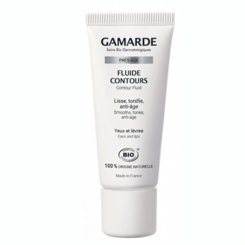 Gamarde Près-Âge Fluide Contours Bio 20 ml est un soin anti-âge qui lisse et tonifie le contour des yeux et des lèvres grâce à son trio d’actifs : cyprès, potassium, silicium. Au coeur de sa formule, les huiles de Noisette Bio et de Germe de Blé anti-âge riches en vitamine E antioxydante et l’huile essentielle Bio d’Ylang-Ylang, tonifiante, ciblent les signes de l’âge. Les contours sont tonifiés, les rides et ridules lissées pour un visage visiblement rajeuni.