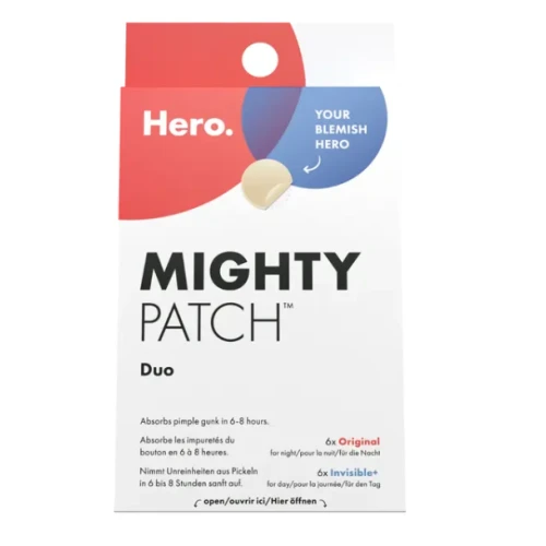 Ce coffret Duo pratique comprend 2 essentiels incontournables pour une collection de patchs infaillible : MIGHTY PATCH™ Original et MIGHTY PATCH™ Invisible+. Des boutons ? Hero à la rescousse ! Fabriqué à partir d’hydrocolloïde de qualité médicale, MIGHTY PATCH™ Original est le patch anti-acné le plus vendu aux États-Unis*. Le patch anti-acné absorbe les impuretés en 6 à 8 heures (si facile, vous pouvez le faire littéralement en dormant) pour vous réveiller avec une peau plus nette le matin. MIGHTY PATCH™ Invisible+ est notre patch LE PLUS FIN et se fond à votre peau pour être à peine visible. Le patch de jour absorbe les impuretés, empêche de tripoter le bouton et favorise la guérison.