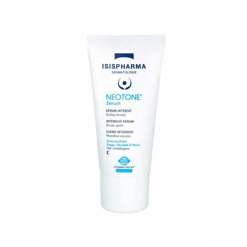 Pour lutter contre vos taches brunes, Isispharma a développé Neotone, une gamme de soins complets qui vous accompagne quotidiennement pour nettoyer la peau, corriger et prévenir l’apparition des taches.