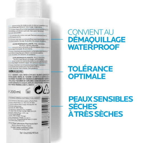 Découvrez le Lait Démaquillant Physiologique de La Roche-Posay. Démaquille en douceur les peaux sensibles sèches à très sèches. Convient au démaquillage waterproof.