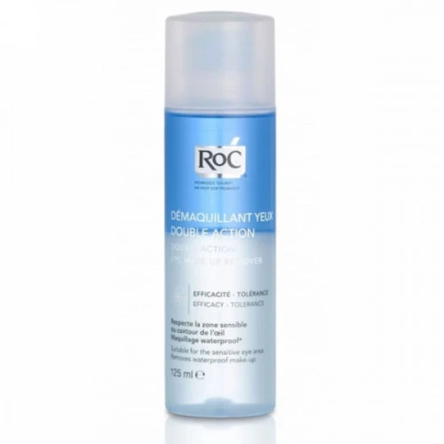 Grâce à sa combinaison unique d’eau et d’huile, RoC Démaquillant Yeux Double Action 125 ml enlève les traces de maquillage les plus tenaces, même waterproof, et respecte la zone sensible du contour de l’oeil.