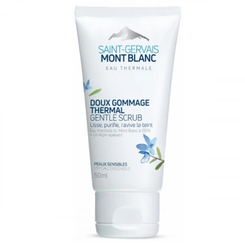 Saint-Germain Mont Blanc Doux Gommage Thermal 50 ml est un soin indiqué pour exfolier en douceur toutes les peaux même les plus sensibles. Composé de Lin Alpin apaisant, il lisse, purifie la peau sans l’agresser et ravive le teint. Ses petites billes sont d’origine naturelle et 100% biodégradables.