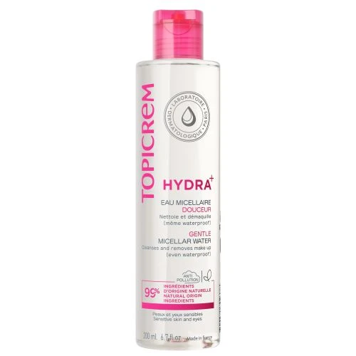Topicrem Eau Micellaire Douceur Visage & Yeux 200 ml sans parfum nettoie et démaquille en douceur les peaux sensibles de toute la famille pour une peau propre, fraîche et nette sans besoin de rinçage, l’EAU NETTOYANTE laisse la peau propre, fraîche et nette. Testée sur peaux et yeux sensibles, ainsi que sur des porteurs de lentilles.