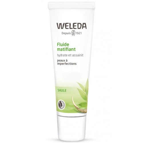 Weleda Fluide Matifiant à la Saule Bio 30 ml est un soin qui hydrate tout au long de la journée et assainit les peaux à imperfections. Il est léger et frais. Il contient de l’extrait de saule aux propriétés antibactériennes. Grâce à son effet matifiant longue durée, il unifie le teint et affine le grain de peau. Il aide à éliminer les impuretés, il réduit l’aspect brillant de la peau et l’apaise. Le fluide matifiant de Weleda hydrate les peaux à imperfections et les assainit. Il a un effet matifiant durable. La peau est moins brillante. Elle et apaisée et les impuretés sont réduites.